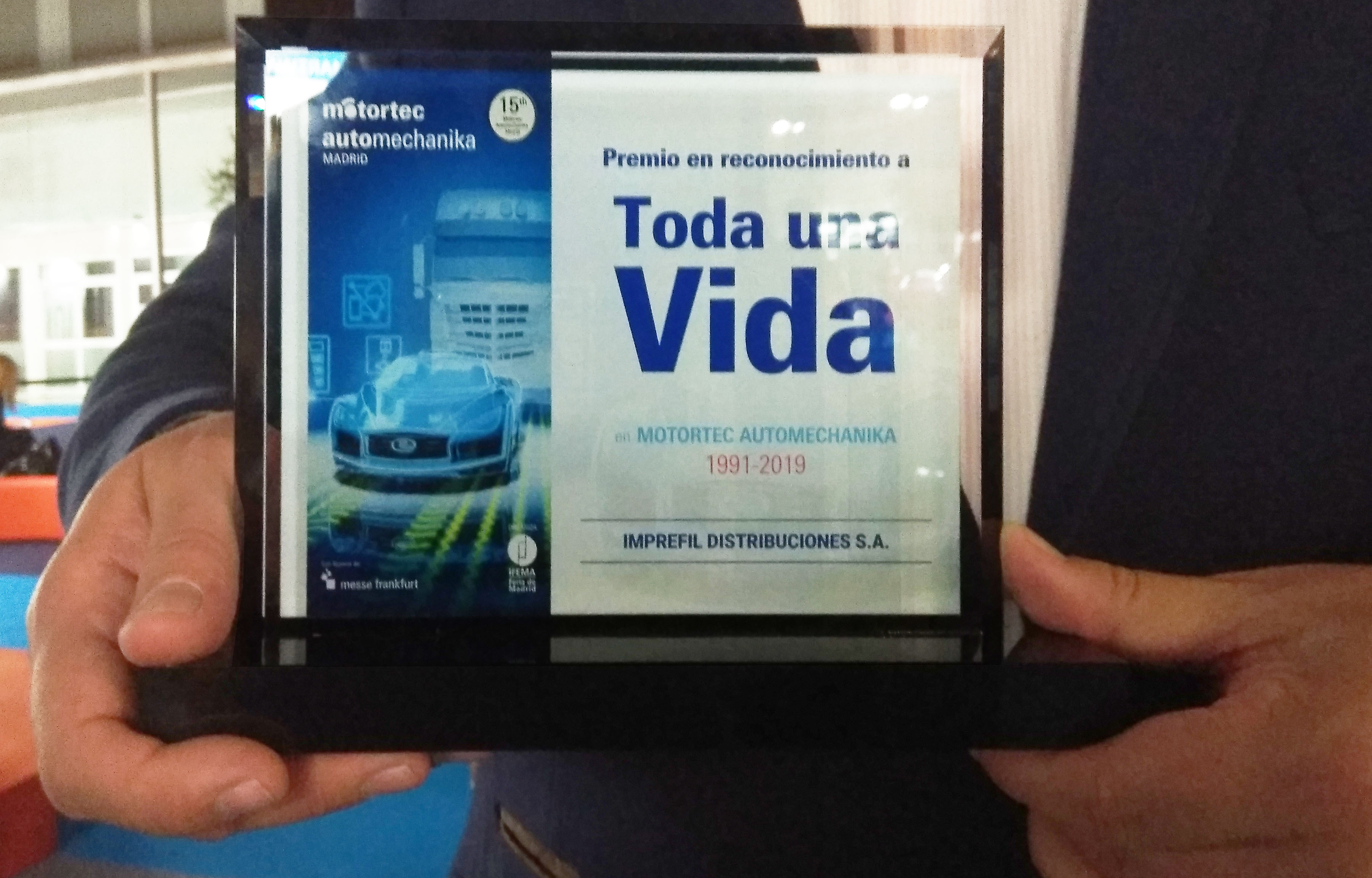 Imprefil ha apostado firmemente por la feria Motortec y por eso ha participado desde su primera edición en el año 1991 de manera ininterrumpida, por este motivo la organización, desde la Galería de la Innovación, una iniciativa diseñada para la I+D+i sectorial, que reconoce la labor de investigación, la capacidad innovadora y los desarrollos técnicos que están llevando a cabo las empresas del sector, ha reconocido a Imprefil por Toda una Vida en Motortec Automecánica. Jesús Villafañez, ,CEO de Imprefil Distribuciones, recogió el premio y desde este espacio ha querido agradecer a todos sus colaboradores el apoyo recibido durante estos estos años y que ha hecho posible este reconocimiento.